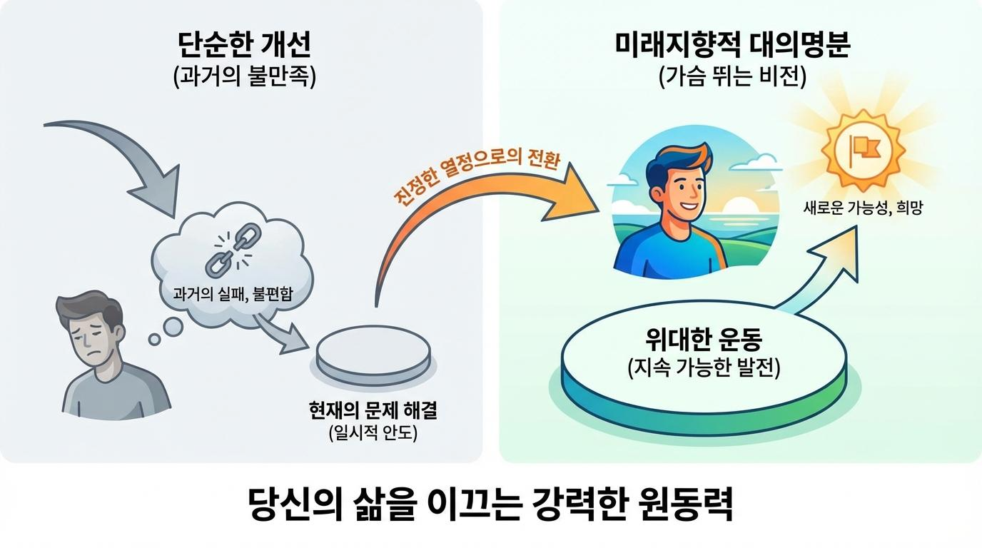 많은 사람이 자신의 삶을 변화시키고 싶어 하지만, 어디서부터 시작해야 할지 막막해합니다. 단순히 현재의 문제를 해결하려는 시도만으로는 진정한 만족을 얻기 어렵습니다. 우리의 삶을 지속 가능하게 발전시키고 열정적인 여정으로 만드는 핵심은 바로 미래지향적인 대의명분을 발견하고 그것을 '위대한 운동'으로 승화시키는 데 있습니다.